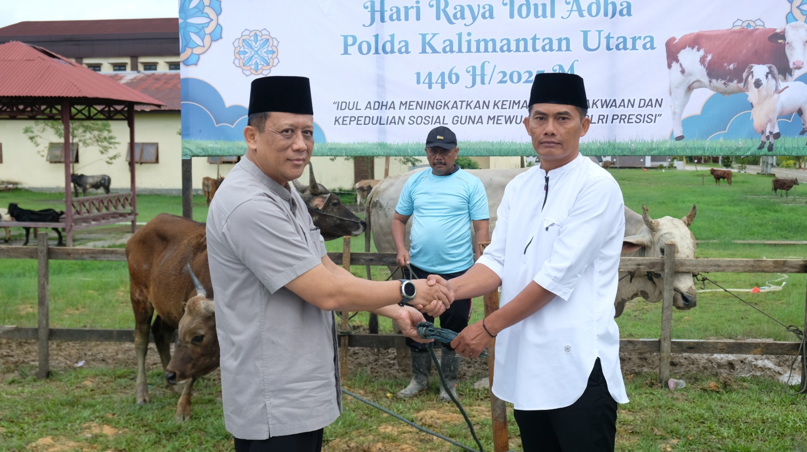 Kabid Humas Polda Kaltara, Kombes Pol. Budi Rachmat, S.I.K., M.Si., menjelaskan bahwa hewan kurban tersebut berasal dari Kapolda, Wakapolda, para pejabat utama, serta personel Polda Kaltara, dan diserahkan secara langsung kepada panitia penyelenggara.